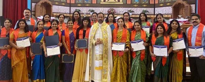 ഡാലസ്: കോട്ടയം വടവാതൂര് പൗരസ്ത്യ വിദ്യാപീഠത്തിന്റെ കീഴില് ചിക്കാഗോ സെന്റ് തോമസ് സീറോ മലബാര് രൂപതയുടെ മതബോധന ഡിപ്പാര്ട്ട്മെന്റായ മാര്ത്തോമാ തിയോളജിക്കല് ഇന്സ്റ്റിറ്റ്യൂട്ട് നടത്തുന്ന ദൈവശാസ്ത്ര പഠനത്തില്, ഡാലസ് സെന്റ് തോമസ് സീറോ മലബാര് ഫെറോനാ ദേവാലയത്തിലെ 22 അല്മായര് ഡിപ്ലോമ ബിരുദം നേടി.